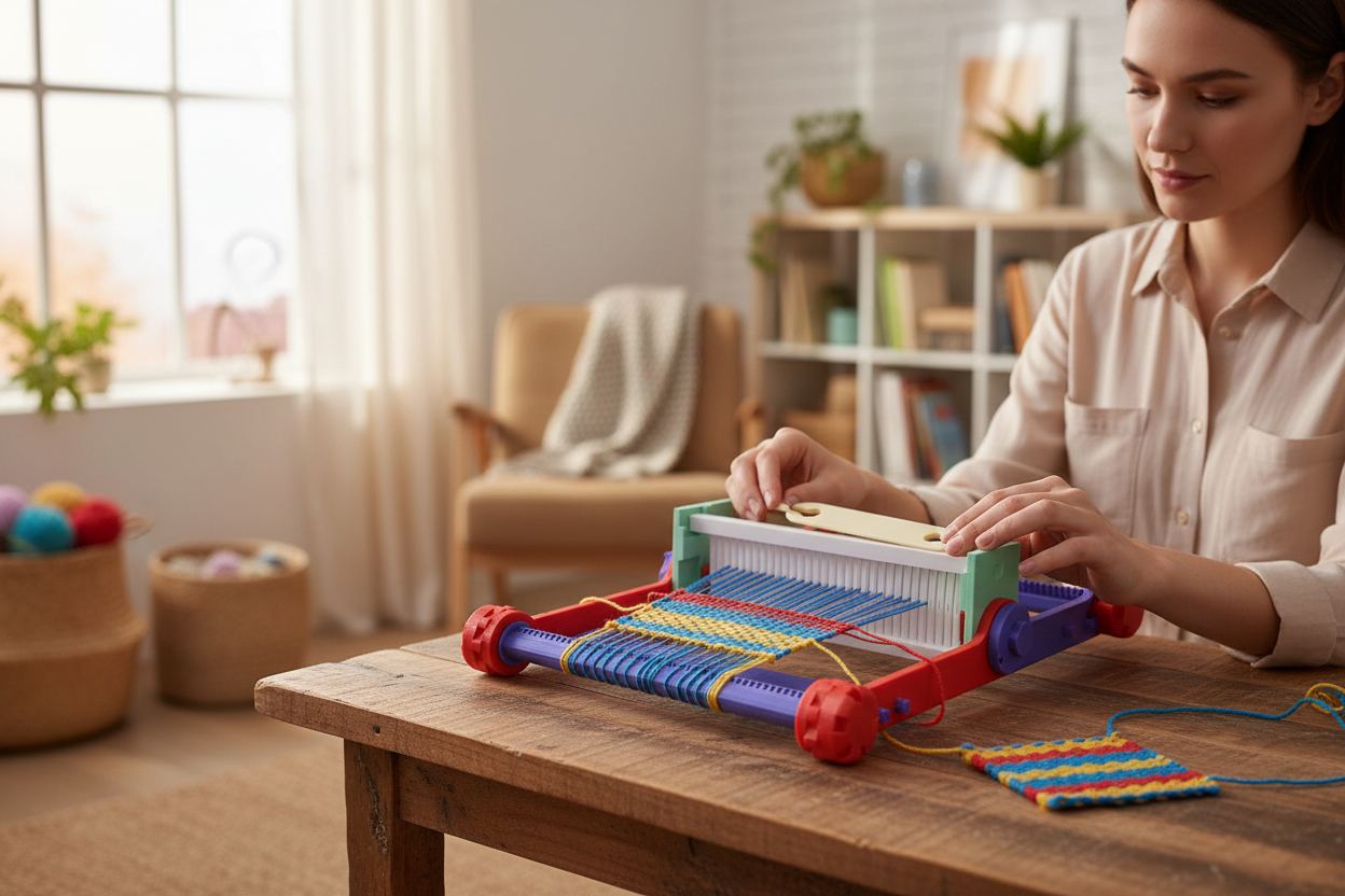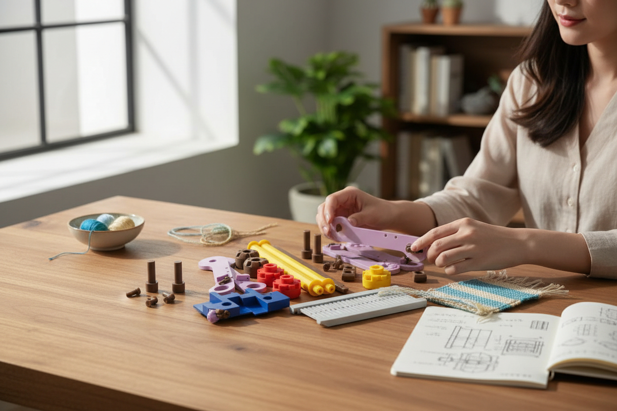 El Telar María de 30 cm en impresión 3D de Handcraftlive es un telar de mesa moderno que une el tejido artesanal tradicional con tecnología de fabricación digital, permitiendo crear piezas textiles únicas, sostenibles y de alta calidad desde casa.