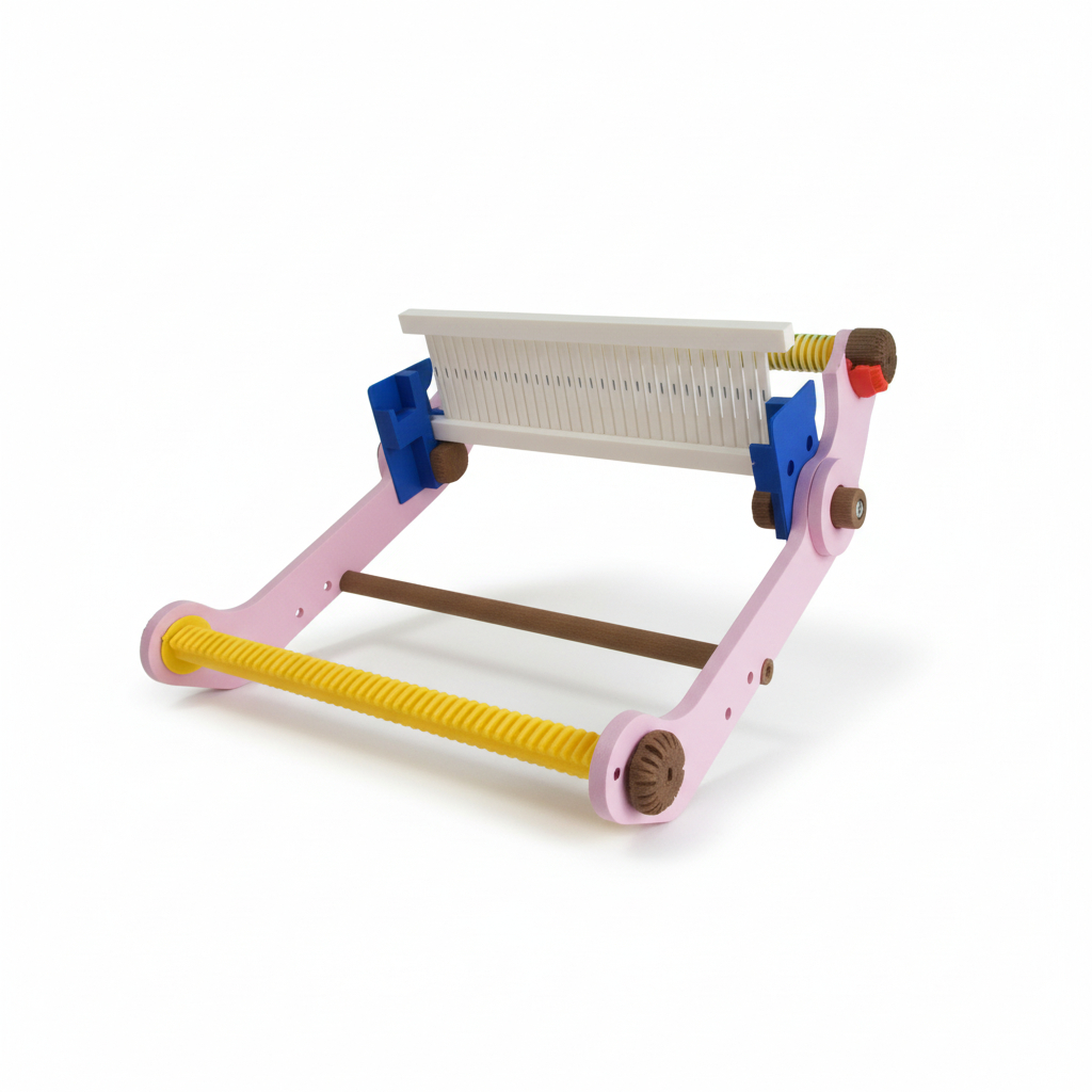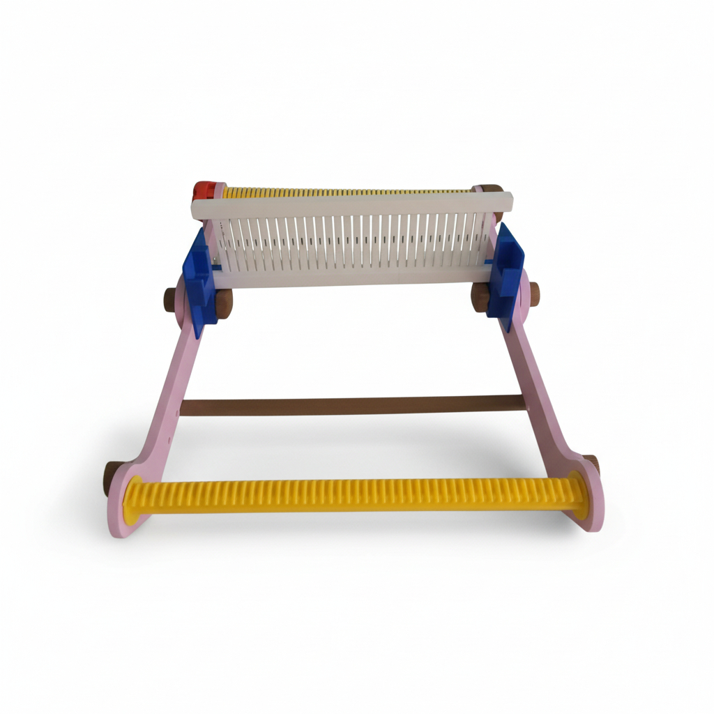 Gracias a su estructura fabricada mediante impresión 3D, este telar ofrece una excelente estabilidad, precisión en sus piezas y una tensión uniforme de la urdimbre, lo que permite obtener tejidos más parejos, prolijos y profesionales.